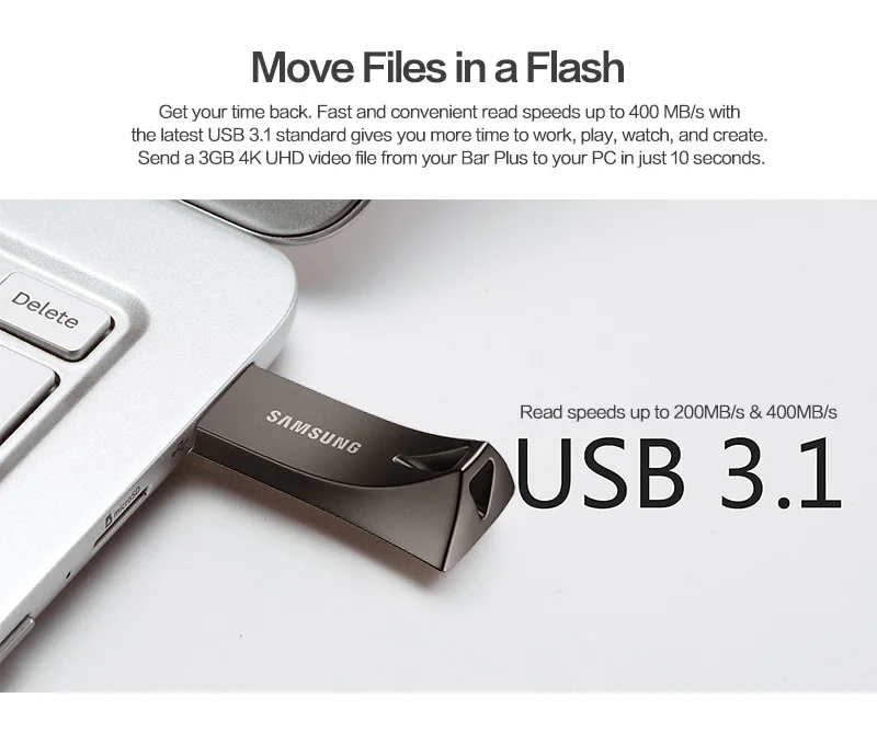 SAMSUNG Bar Plus USB Flash Drive 64GB 32GB Reading Speed 200mb/s Mini Stick 256GB 128GB Pen Drive USB 3.1 Memory U Disk